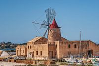 Saline mit Windmühle und Salzmuseum. Die Salina Infersa befindet sich in Murana in der Nähe von Marsala. Von Marsala nach Trapani führt die Via del Sale, die Salzstraße. Die Windmühlen dienen als Pumpen für die Salzsole. Die Mühlsteine in der Mühle zerkleinern der Salzbrocken. Ab 1960 wurden viele Salinen geschlossen, und die Windmühlen…
