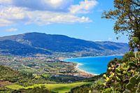 Die Nordküste von Sizilien, mit Blick auf Patti. Aufgenommen vom Capo Tindari im Frühling 2015.