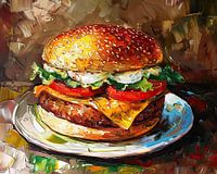 Sizzle in Symphony - kleurrijk hamburger schilderij