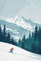 Koop dit digital art kunstwerk Skiërs in besneeuwde bergen van Poster Art Shop als reproductie op canvas, aluminium dibond, (ingelijste) fotoprint, behang en ArtFrame, op maat geprint in Fine-Art kwaliteit.