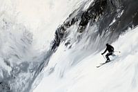 Te midden van ongerepte, sneeuwwitte vlaktes trekt een donker silhouet krachtig door het ijzige landschap. De imposante, ruige bergen lijken de moed van de skiër uit te dagen, terwijl de dynamische penseelstreken de kilte en snelheid van de beweging vastleggen. Een fascinerend spel tussen licht en schaduw onthult de schoonheid van het…