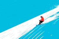 In een helderblauwe lucht glijdt een dynamische figuur in een felrood pak over de besneeuwde piste. De verse poedersneeuw spat op terwijl het momentum het moment vastlegt - een gevoel van vrijheid en adrenaline. De heldere eenvoud van het ontwerp benadrukt het ongerepte winterlandschap en de elegantie van de beweging.