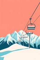 Hoog in de frisse berglucht trekt een kabelbaan majestueus over besneeuwde bergtoppen. De heldere lijnen staan in fascinerend contrast met de zachte, roze kleuren van de lucht. Alles lijkt rustig en uitnodigend, terwijl de majestueuze bergen op de achtergrond het landschap krachtig domineren. Hier begint het avontuur in het winterparadijs.