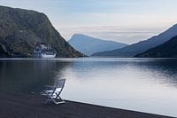 het cruiseschip dat de fjord verlaat aan Skjolden.