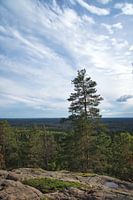 Skurugata in Småland, Zweden. Uitkijkpunt met uitzicht over bossen in Scandinavië. Wandelpad over rotsen en door bossen.
