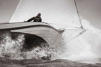 Klassiek skutsje in actie – zwart-wit wandprint - contrastrijkThomasVaer | Tom Coehoorn Skûtsje Heerenveen in de achtervolgingThomasVaer | Tom Coehoorn