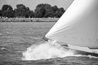 Skûtsje klassiek Fries zeilend Tjalkschip tijdens de jaarlijkse SKS Skûtsjesilen races van 2019 op het IJsselmeer bij Lemmer. De race op het IJsselmeer werd gewonnen door de Skutsje van Grou.