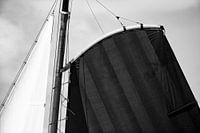 Heerenveen Skûtsje, klassiek Fries zeilend Tjalkschip, tijdens de jaarlijkse SKS Skûtsjesilen races op het IJsselmeer bij Lemmer in 2019. Skutsjesilen