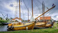 Skutsjes wachten in de haven van Workum op de volgende tocht.
