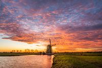 Zonsopgang in de Munnikenpolder van Leiderdorp. Met als blikvanger de Meerburgermolen in het centrum van de aandacht.