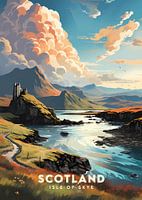 Ontdek de adembenemende schoonheid van Isle of Skye in Schotland. Dit betoverende eiland heeft ruige landschappen, oude kastelen en kristalhelder water. Onze poster vangt de essentie van Skye met zijn dramatische bergen, glooiende heuvels en charmante kustdorpjes.