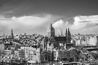 Gezicht op de stad Amsterdam met schitterende wolkenlucht. Prins Hendrikkade en Sint-Nicolaaskerk (co-kathedraal) zijn te zien.