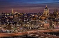 De skyline van Amsterdam gefotografeerd vanaf de skylounge van het Hilton hotel. Deze foto is gemaakt vlak na de zonsondergang