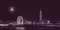 Koop de foto Skyline Antwerpen in de winter met volle maan van Ribbi op canvas, aluminium dibond, (ingelijste) fotoprint, behang en ArtFrame, op maat geprint in Fine-Art kwaliteit.