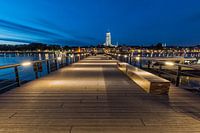 De nieuwe vlonder tegenover de skyline van Deventer is een geliefd onderwerp voor landschapsfotografie. Door het blauwe uurtje en het goudgele licht ontstaat een mooie sfeer. De helder verlichte kerk steekt daar mooi bovenuit!