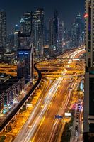 Avondfoto van de skyline van Dubai over de Sheikh Zayed Road. Deze foto is genomen vanaf het dakterras van het Sheraton Four Points Level 43.