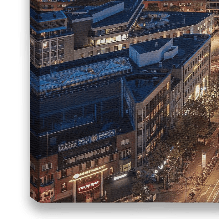 De City of Light. Dat is hoe Eindhoven bekend staat. Deze foto van de skyline van Eindhoven geeft dit perfect weer. Met de herkenbare Blob, de Philips Lichttoren en het Philips Stadion op de achtergrond, is dit een complete weergave van de stad ‘by night’.