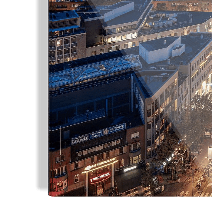 De City of Light. Dat is hoe Eindhoven bekend staat. Deze foto van de skyline van Eindhoven geeft dit perfect weer. Met de herkenbare Blob, de Philips Lichttoren en het Philips Stadion op de achtergrond, is dit een complete weergave van de stad ‘by night’.