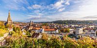 Uitzicht vanaf de Neckarhaldenweg richting Esslingen am Neckar, Baden-Württemberg, Duitsland