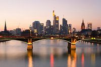De skyline van Frankfurt in de avond