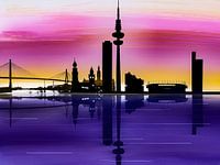 Weergave van de skyline van Hamburg in de avonduren.