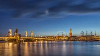 Op de foto zijn onder andere de Stadsbrug en de Nieuwe Toren te zien. De foto is gemaakt vanaf de Spoorkade tijdens een mooi blauw uurtje met behulp van een statief en afstandsbediening. De gehanteerde sluitertijd is 30 seconden en het diafragma f11.