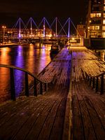 Straatfotografie bij Nacht Blauw, Roestbruin en Zwart.