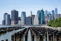 De skyline van lower Manhattan, New York City. Deze foto is gemaakt vanuit Brooklyn Bridge Park in Brooklyn.