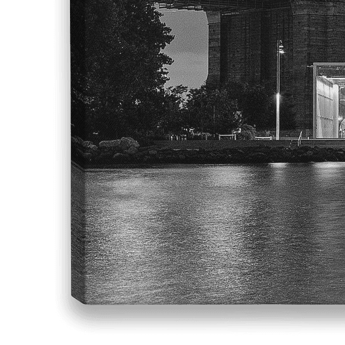 De skyline van lower Manhattan New York City in de avond gefotografeerd vanuit Brooklyn.