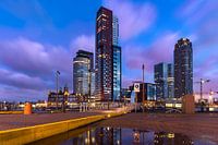 Deze foto van Rotterdam is vroeg genomen tijdens het blauwe uurtje. In de reflectie van het gebouw zie je de zon langzaam opkomen.