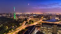 Een foto geschoten vanaf het Erasmus MC richting de Euromast en haven. De Euromast is gekleurd naar de kleuren van Rotterdam. ...Wat blijft Rotterdam toch prachtig.