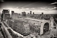 De skyline van Rotterdam met de Markthal en Blaak op de voorgrond. Deze foto is gemaakt vanuit het Stedin gebouw, een perfect uitzicht over de stad.