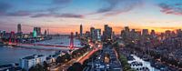 Koop de Rotterdam foto Skyline Rotterdam panorama bij zonsondergang van Daan Duvillier | Regio in de Kijker als print op canvas, aluminium dibond, (ingelijste) fotoprint, behang en ArtFrame. Voor jou op maat geprint in Fine-Art kwaliteit.