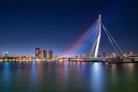 Blauw uur over de skyline van Rotterdam met uitzicht op de Erasmusbrug