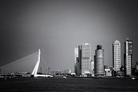 Skyline van Rotterdam, Nederland, met wolkenkrabbers en de Erasmusbrug. De brug verbindt het centrum met de Kop van Zuid. Een nieuwbouwwijk met mooie architectuur en veel hoogbouw.