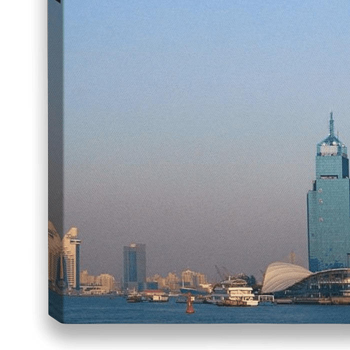 Koop de foto Skyline Shanghai, Bund, Financial sector van Marjolein Fortuin als print op canvas, aluminium dibond, (ingelijste) fotoprint, behang en ArtFrame. Voor jou op maat geprint in Fine-Art kwaliteit.