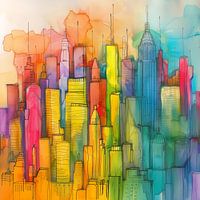 Skyline abstract en kleurrijk, stedelijk landschap.