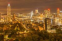 Foto is gemaakt in de avond vanaf de Euromast. Je hebt dan een prachtig overzicht op het park waar al wat herfstkleuren zijn waar te nemen, de Zalmtoren, de Erasmusbrug en een deel van de Wilhelminapier.