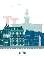 Skyline illustratie Assen in kleur van Mevrouw Emmer