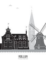 Kollum, Friesland: dan denkt Mevrouw Emmer aan de Poldermolen, de Oosterkerk en het gemeentehuis...