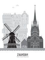 Zaandam, Noord-Holland: dan denkt Mevrouw Emmer aan de Sint-Bonifatiuskerk, het Inntel Hotel (opgebouwd uit Zaanse huisjes) en de vele molens...