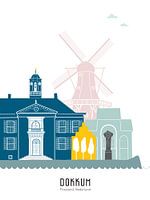 Dokkum, Friesland: dan denkt Mevrouw Emmer aan het stadhuis, de molen, het standbeeld van Sint Bonifatius en