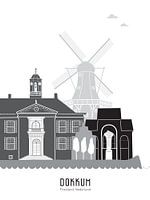 Dokkum, Friesland: dan denkt Mevrouw Emmer aan het stadhuis, de molen, het standbeeld van Sint Bonifatius en