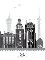 Goes, Zeeland: dan denkt Mevrouw Emmer aan het stadhuis, de grote kerk (Maria Magdalena), de tv-toren en de watertoren..