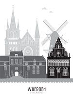 Woerden: dan denkt Mevrouw Emmer aan het kasteel, het oude Stadhuis, Sint-Bonaventurakerk en de molen De Windhond...