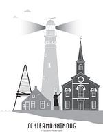 Skyline illustratie waddeneiland Schiermonnikoog zwart-wit-grijs van Mevrouw Emmer
