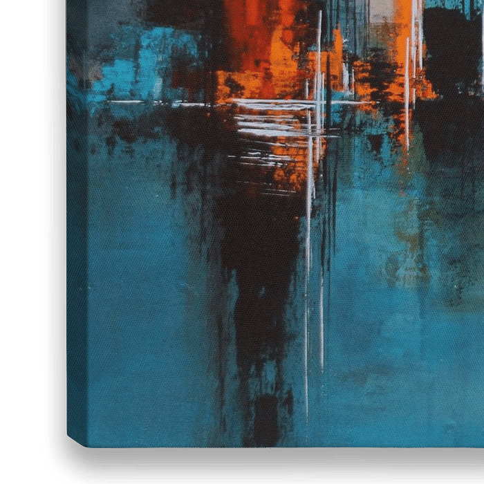 acrylschilderij, turkooizen skyline
