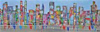 Heldere kleuren schieten uit het doek op deze mysterieuze achtergrond! Geweldig in licht en donker interieur! Dit stadsgezicht komt uit een serie en is geschilderd op een doek formaat 60x180.