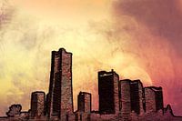 Skyline met rood en geel, digitale bewerking. Abstractie.