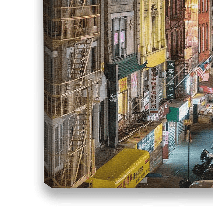 Koop de foto Skyline uitzicht over Chinatown in New York. van Karsten Rahn op canvas, aluminium dibond, (ingelijste) fotoprint, behang en ArtFrame, op maat geprint in Fine-Art kwaliteit.